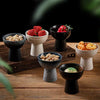 Produzida em cerâmica de alta qualidade, esta tigela redonda com pé alto combina elegância e versatilidade. Ideal para servir sobremesas, sorvetes, frutas, saladas, sopas e petiscos, também pode ser usada como prato de apresentação para refeições completas.